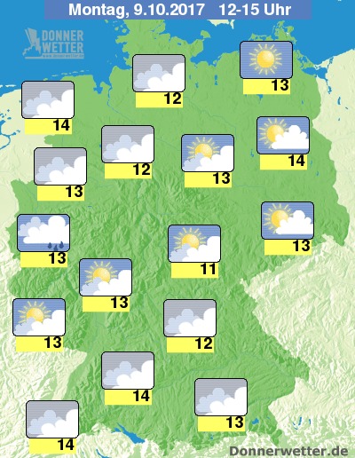Heute Abend halten sich über Niedersachsen und Schleswig-Holstein dichte Wolken und heir fällt zeitweise Regen, sonst ist es meist stark oder aufgelockert bewölkt und von vereinzelten Schauern abgesehen trocken. Im Nordosten ist es meist sonnig und trocken. Die Temperatur liegt bei 11 bis 15 Grad.