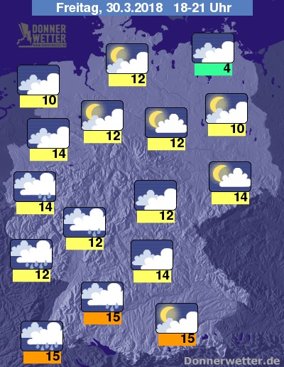 Zuvor liegen die Höchstwerte bei kühlen 4 Grad auf Rügen und bei bis zu 15 Grad entlang der Donau.