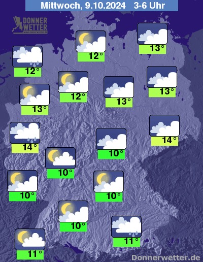 Die Temperaturen gehen in den Frühstunden zurück auf Werte um 14 bis 10 Grad.