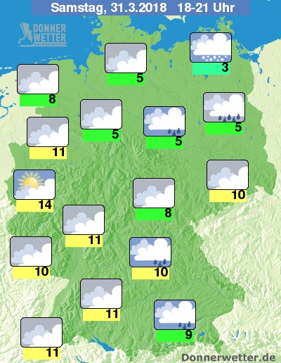 In der Nacht zum Sonntag fällt im Norden und Osten unter dichten Wolken wiederholt Regen, Schneeregen oder Schnee, dabei kann es teils gefährlich glatt auf den Straßen werden! Im Südwesten ziehen neue dichte Wolken auf, die hier gebietsweise Schnee oder Schneeregen bringen, sonst ist es teils stark, teils aufgelockert bewölkt und trocken. Die Temperatur sinkt auf 6 bis 0 Grad.