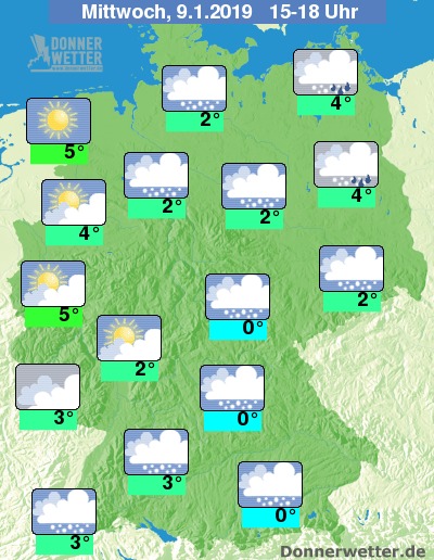 Am Nachmittag fällt vor allem in der Osthälfte und im Süden noch zeit- und gebietsweise Schnee oder Schneeregen, im Nordstau der Berge, sowie an den Alpen auch kräftig. Besonders in höheren Lagen muss mit winterlichen Straßenverhältnissen gerechnet werden. Im Westen werden die Niederschläge immer seltener und die Bewölkung lockert teilweise auf. Insbesondere am Niederrhein und an der Ems scheint die Sonne auch für längere Zeit.