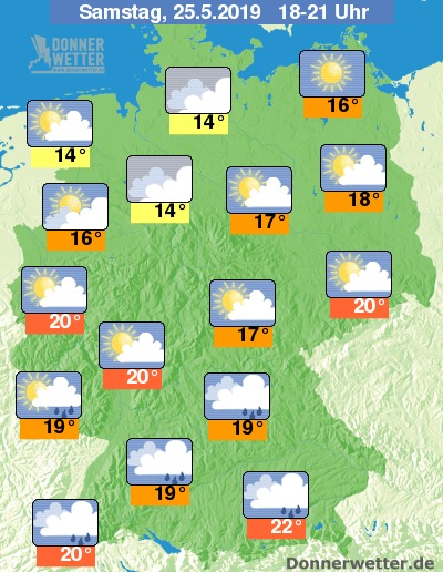 In den Abendstunden dominiert über der Nordhälfte weiterhin ein trockener Mix aus Sonne und Wolken, entlang der Weser kann es auch bedeckt sein. In den späteren Abendstunden klart der Himmel über dem Nordosten sowie im Westen dann vielfach auf. Südlich des Mains bleibt es auch in den kommenden Stunden meist stark bewölkt oder bedeckt und ummer wieder muss mit Schauern gerechnet werden.