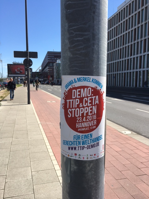 Bei einer Großveranstaltung am morgigen Samstag in Hannover werden schätzungsweise 50.000 Demonstranten gegen die Handelsabkommen TTIP und CETA protestieren.