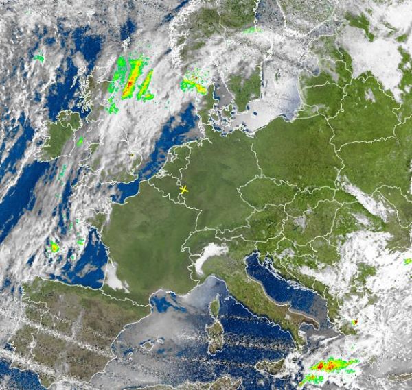 Das Satellitenfoto vom heutigen Morgen zeigt Europa über sehr weite Strecken wolkenlos, hier sorgt der Einfluss von Hoch "Gerd" mit Kerndruck über Polen für verbreitet sonniges und trockenes Sommerwetter. Wesentlich unbeständiger ist die Wettersituation über den Britischen Inseln und auch über Skandinavien, denn hier bringen jeweils Ausläufer atlantischer Tiefs häufig feuchte Luftmassen aufs Land.