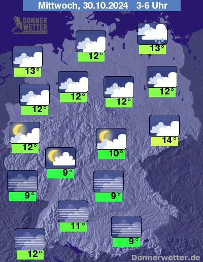In der Nacht zum Mittwoch bleibt der Himmel über der Nordhälfte bedeckt, es sind aber nur noch selten Niederschläge möglich. Im Süden bildet sich im Nachtverlauf verbreitet Nebel oder Hochnebel.