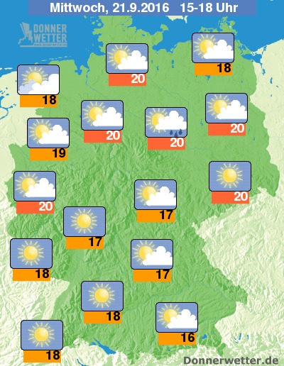 Die Temperaturen erreichen Werte um 16 Grad C im Alpenvorland und um 20 Grad C in Hannover.