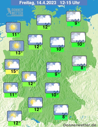 Heute Nachmittag bleibt es über der Osthälfte Deutschlands weitgehend bedeckt und es bilden sich vielerorts Schauer. Im Osten und Nordosten fällt zeitweise Regen. Weiter nach Westen hin zeigt sich dagegen verbreitet die Sonne und es ziehen nur lockere Wolkenfelder durch, dazu bleibt es trocken. Die Temperatur liegt bei 8 Grad in der Lausitz und 15 Grad im Rheinland.