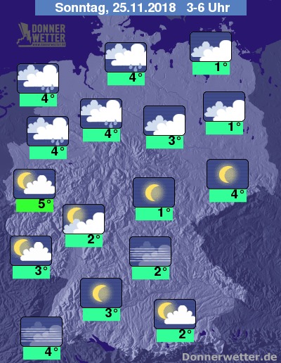 In der kommenden Nacht fällt im Nordwesten und Norden unter dichten Wolken zeitweise Regen, vereinzelt auch Schneeregen. Weiter nach Süden hin zeigt sich der Himmel dagegen zunehmend sternenklar, dazu bleibt es trocken. Stellenweise bildet sich Nebel. Die Temperatur sinkt auf 5 Grad in der Kölner Bucht und bis 1 Grad im Eichsfeld.