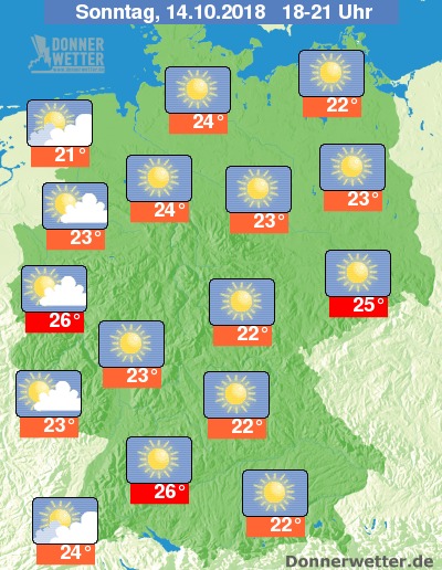 Heute Abend ziehen westlich von Rhein und Ems einige, meist noch aufgelockerte Wolken durch, im übrigen Bundesgebiet bleibt es hingegen weiterhin heiter bis sonnig. Es bleibt trocken bei Werten von 21 Grad in Emden und rund 26 Grad in Köln.
