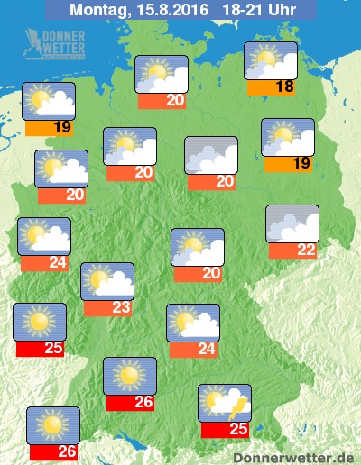 Heute Abend zeigt sich der Norden und Osten gebietsweise stark und sonst meist wechselnd bis aufgelockert bewölkt. Im Süden und auch im Westen ist es hingegen verbreitet heiter oder sonnig. Im Alpenvorland können sich bei teils dichten Quellwolken jedoch einzelne Schauer oder Gewitter entwickeln, sonst bleibt es aber trocken. Die Temperatur liegt bei etwa 18 Grad in Rostock und um 26 Grad in Freiburg.