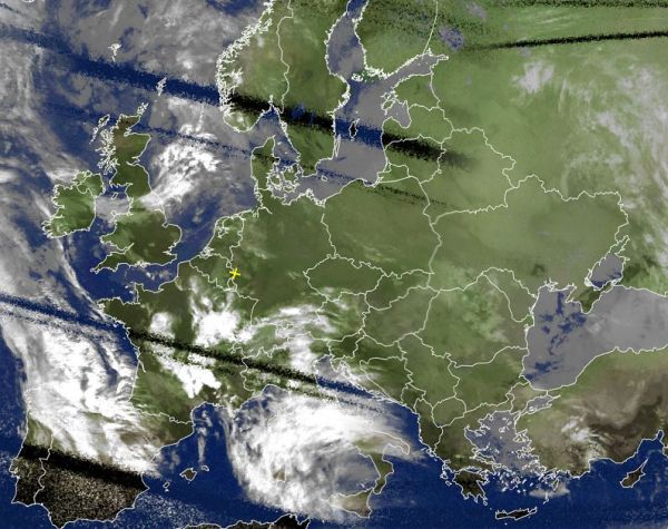 Nach dem Satellitenbild von heute Morgen zeigt sich Europa verbreitet nur locker bewölkt oder auch wolkenlos, dagegen sorgt ein kräftiges Tief an der Iberischen Halbinsel mit seinen Ausläufern für sehr wechselhaftes Schauerwetter in weiten Teilen von der Iberischen Halbinsel bis ins zentrale Mittelmeer. Vor allem im letztgenannten entwickeln sich zahlreiche Schauer und gebietsweise auch Gewitter.