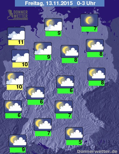Die Temperaturen liegen bei Werten um 5 Grad C bis 11 Grad C.