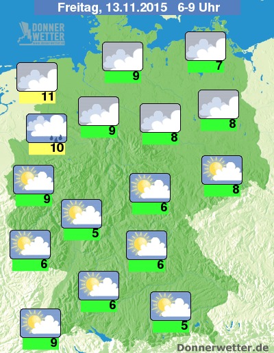Der Morgen startet im Norden dicht bewölkt oder bedeckt aber meist trocken. Die Südhälfte startet mit heiterem Himmel in den Freitag.