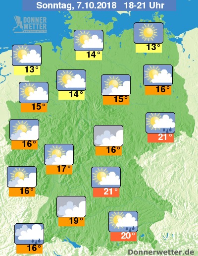 Die Temperaturen liegen bei Werten um 13 bis 21 Grad C.