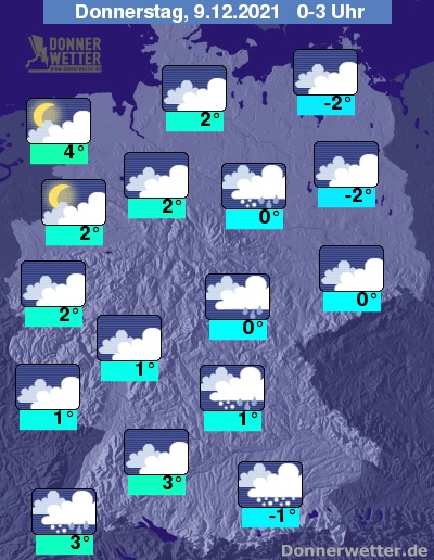 Der Donnerstag startet mit wenig Wetterveränderung. Meist dominieren dichte Wolken oder es ist bedeckt, im Osten und Südosten muss zeitweise mit Regen, Schneeregen oder Schnee gerechnet werden.