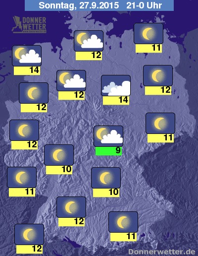 Heute Abend halten sich im Norden gebietsweise dichte oder noch aufgelockerte Wolken, im großen Rest des Landes zeigen sich, bei einem weitgehend wolkenlosem Himmel, dagegen die Sterne. Es bleibt landesweit trocken bei Abendwerten zwischen 14 Grad in Emden und 9 Grad im Vogtland.