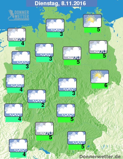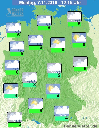 Der Montag gibt bereits einen Vorgeschmack auf den weiteren Wochenverlauf. Frisch, nass und sonnenarm - so lässt sich der Wochenauftakt für die meisten Landesteile wiedergeben. Die Temperaturen erreichen in der Spitze 2 bis 6 Grad C.