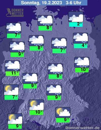 Am Sonntag ist es stark bis dicht bewölkt und es bilden sich doch vielerorts Schauer. Zumindest im Norden können sich im Tagesverlauf hier und da auch ein paar Auflockerungen zeigen, hier bleibt es dann weitgehend trocken. Die Temperatur steigt auf 4 Grad an der Oder und bis 12 Grad im Berchtesgadener Land.