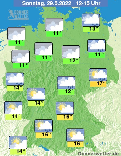 Heute Nachmittag ist es im Süden häufig heiter, teils können hier auch mehr Wolken durchziehen, es bleibt aber meist trocken. Im übrigen Bundesgebiet ist es hingegen überwiegend stark bewölkt und es können sich einzelne Schauer bilden. Die Temperatur liegt bei frischen 11 Grad an der Nordsee und bis 17 Grad in der Lausitz.
