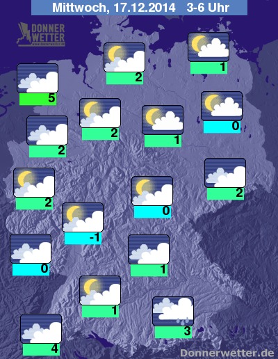 In der Nacht zum Mittwoch fällt im Süden noch weiterer Regen, Schneeregen oder Schnee, sonst bleibt es weitgehend aufgelockert bis stark bewölkt und weitgehend trocken. An der Ostsee ist es gebietsweise auch sternenklar. Die Temperatur sinkt auf 5 Grad in Ostfriesland und bis -1 Grad im Taunus.