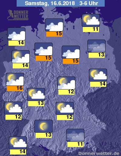 In der kommenden Nacht lockert und klart der Himmel vor allem über der Südhälfte der Republik verbreitet auf. Im Osten und Nordosten ist es meist locker bis wechselnd, im Norden und Nordwesten hingegen eher stark bewölkt, dazu bleibt es trocken. Die Temperatur sinkt auf 16 Grad in der Kölner Bucht und bis 11 Grad an der Müritz.