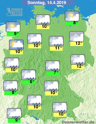 Am Sonntag halten sich zumeist dichte Wolken, nur örtlich sind auch kurze Auflockerungen möglich. Bei Höchstwerten von 6 Grad am Taunus und bis 12 Grad in Berlin fällt gebietsweise Regen.