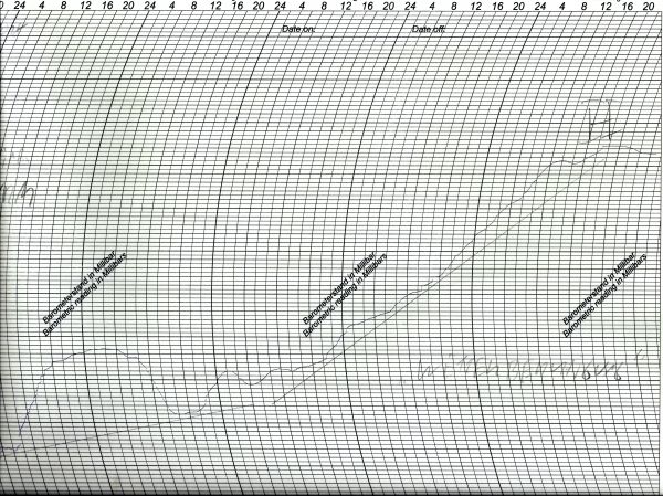 Der Schrieb zeigt den Luftdruckverlauf zwischen Mittwoch und Sonntag vergangener Woche an unserer Wetterstation in Bonn: