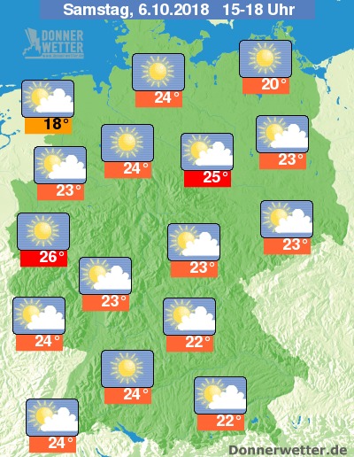 Am Nachmittag nimmt die Bewölkung regional dann etwas zu, insgesamt bleibt es aber ein sehr freundlicher Eindruck. Die Temperaturen ziehen nochmals ein wenig an und erreichen Höchstwerte um 18 bis 26 Grad C.