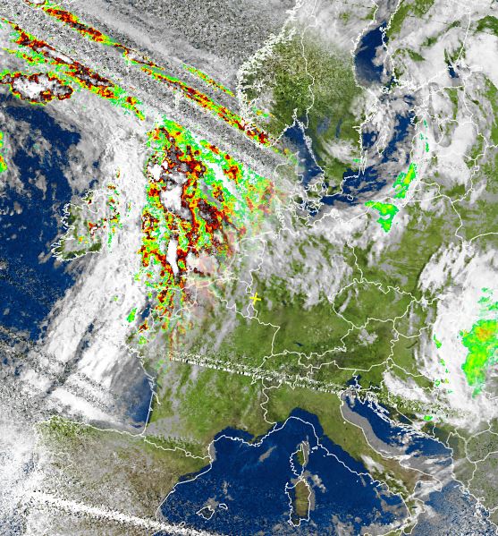 Auf dem Satellitenfoto von heute Morgen sind die Ausläufer des Tiefs "Pascal" bei den Britischen Inseln zu erkennen, sie sorgten über England und Schottland für verbreitet dichte Wolken und vielerorts kräftige Regengüsse.