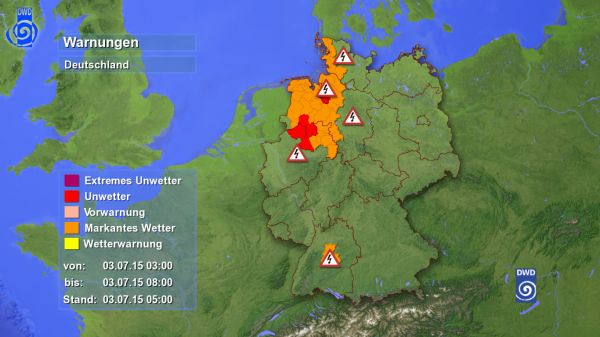 Aktuelle gibt es Gewitter in Niedersachsen und Ostwestfalen.