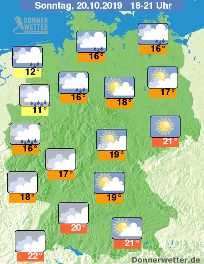 Heute Abend fällt im Westen und Norden unter dichten Wolken weiterhin zeitweise Regen. Dichte Wolken halten sich auch von Baden-Württemberg bis nach Hessen, hier bleibt es aber meist trocken. Im übrigen Land ist es oft heiter, teils auch aufgelockert bewölkt und trocken. Die Temperatur liegt bei kühlen 11 Grad im südlichen Emsland und bis zu 22 Grad in Freiburg.