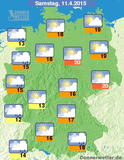 Heute ist es im Süden und Südwesten, und auch teils schon im Westen oft stark bewölkt und es kann gebietsweise Regen fallen, in den anderen Landesteilen bleibt es dagegen zunächst bei lockerer bis aufgelockerter Bewölkung trocken. Am Nachmittag ziehen die teils dichten Wolken weiter bis in die Mitte und gegen Abend auch in die östlichen Landesteile, dabei können sich einzelne Schauer, vereinzelt auch Gewitter entwickeln. Die Temperatur steigt auf 12 Grad im Saargau und bis 20 Grad in Magdeburg.