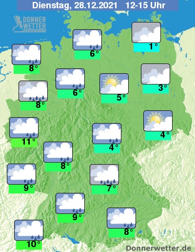 Heute Nachmittag ist es verbreitet stark bewölkt oder bedeckt, zum Teil ist es auch neblig-trüb. Im Osten und Nordosten bleibt es meist trocken, sonst fällt zeitweise Regen. Die Temperatur liegt bei 1 Grad in Vorpommern und bis 11 Grad im Rheinland.