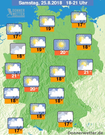 Heute Abend ist es im Süden dicht bewölkt bei zeitweiligem Regen. Nördlich des Mains scheint hingegen häufig die Sonne, hier und da ziehen allerdings auch mal dichte Wolken durch, die einzelne Schauer und selten auch Gewitter bringen können. Zum Großteil bleibt es aber trocken bei 17 Grad am Bodensee und etwa 21 Grad in der Lausitz.