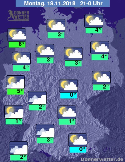 In den Abendstunden zeigt sich der Himmel über weiten Landesteilen zunächst noch stark bewölkt oder bedeckt, mit einzelnen Schneeregen- oder Schneeschauern ist allerdings nur noch regional im Südwesten Deutschlands zu rechnen. Im weiteren Verlauf klingen die Schauer hier zwar immer mehr ab, der Himmel bleibt aber meist stark bewölkt. In den übrigen Landesteilen lockern die Wolken dagegen zunehmend auf.