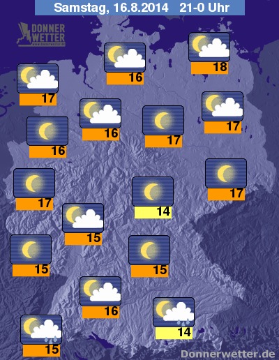 Heute Abend klingen die Schauer praktisch überall ab und es bleibt nachfolgend trocken. Dazu klart der Himmel weiter auf und vielfach wird es sternenklar. Die Abendwerte liegen bei 18 Grad in Neubrandenburg und 14 Grad am Starnberger See.