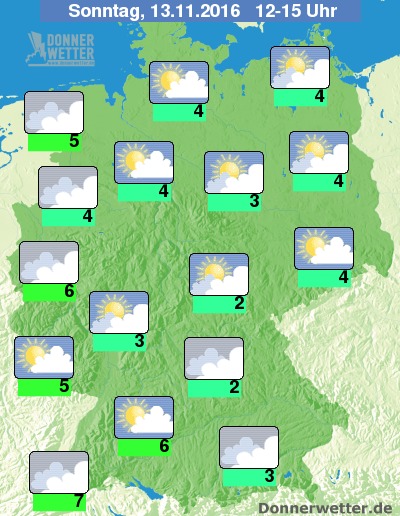 Heute Nachmittag halten sich vor allem in den westlichen Landesteilen und im Alpenvorland oft dichte Wolken oder es ist neblig-trüb, sonst zeigt sich zwischen den Wolken aber auch häufig die Sonne und gebietsweise ist es sogar sonnig, zudem bleibt es überall trocken. Die Temperatur liegt bei 2 Grad in Mittelfranken und um 7 Grad im Breisgau.