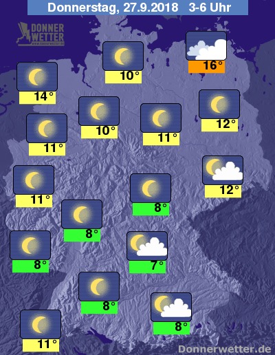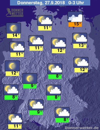 In der Nacht zeigt sich der Himmel über weiten Landesteilen zunächst noch locker bewölkt, im weiteren Nachtverlauf klart es dann aber verbreitet auf. Lockere Wolkenfelder halten sich dann meist nur noch stellenweise im Südosten. Dichtere Wolken gibt es im Ostseeküstenumfeld, Schauer sind aber nicht zu erwarten.
