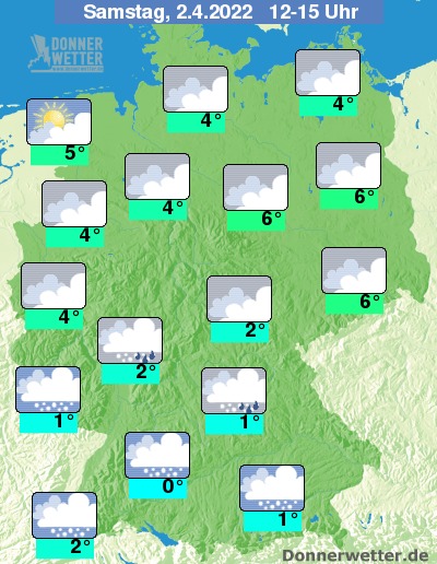 Heute Nachmittag bleibt es über dem Land fast überall bedeckt, lediglich im Nordseeumfeld kann sich die Sonne wieder häufiger blicken lassen. Im Süden fällt verbreitet Schnee, zum Teil auch Schneeregen. Im Südwesten sind einzelne Schnee- oder Schneeregenschauer möglich. Im übrigen Land bleibt es weitgehend trocken bei 0 Grad an der Schwäbischen Alb und 6 Grad in der Lausitz.