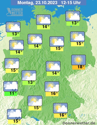 Heute Nachmittag zieht im Südwesten des Landes aus Südwesten ein schmales Regenband durch, auch sonst ist es im Süden und Westen oft stark, teils noch aufgelockert bewölkt. Im übrigen Land ist es zumeist heiter, teilweise auch sonnig, dazu bleibt es trocken. Die Temperatur liegt bei 11 Grad im Saargau und 18 Grad in der Lausitz.