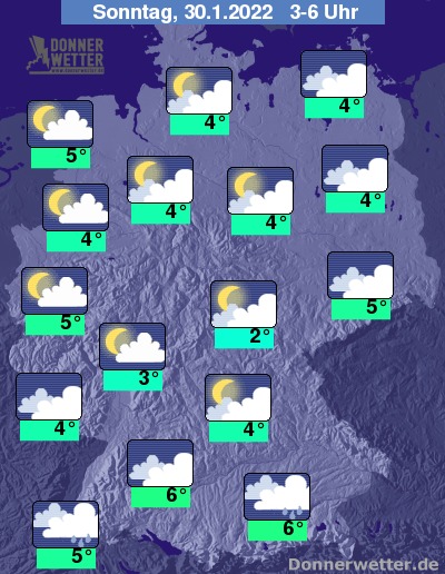 Am Sonntag ziehen gebietsweise dichte Wolken durch, vielerorts zeigen sich aber auch Aufheiterungen, zudem bleibt es trocken. Lediglich am Alpenrand sind am Morgen noch letzte Tropfen oder Flocken möglich. Die Temperatur steigt auf 3 Grad im Eichsfeld und bis 8 Grad im Breisgau. Im Norden und Osten ist es verbreitet stürmisch, an den Küsten herrscht ein zum Teil schwerer Sturm mit orkanartigen Böen.