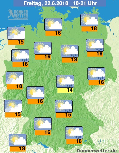 Heute Abend bilden sich über der Osthälfte des Landes gebietsweise Schauer, dazu sind hier Aufheiterungen auch nur gelegentlich. Im übrigen Bundesgebiet ist es hingegen oft locker bis aufgelockert bewölkt und bis auf ganz vereinzelte Schauer auch trocken. Die Temperatur liegt bei eher herbstlichen 14 bis 18 Grad.
