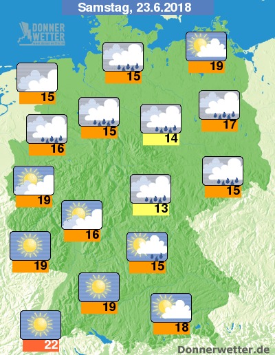 Am Samstag zieht ein Regenband über die Nordosthälfte Deutschlands, Auflockerungen sind dabei selten. Weiter nach Südwesten hin ist es dagegen verbreitet heiter bis sonnig und trocken. Die Temperatur steigt auf 13 Grad im Thüringer Becken und bis 22 Grad im Breisgau.