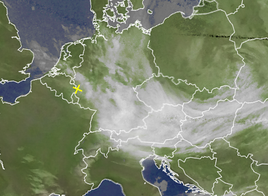 Aktuell liegen viele Wolken über Deutschland und ein wenig Regen fällt besonders im Osten und Süden des Landes. Hier unser aktuelle Satellitenbild:
