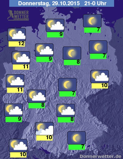 Heute Abend bleibt der Himmel über der Osthälfte der Republik überwiegend sternenklar, hier und da ziehen nur lockere Wolken durch. In den weiter westlich gelegenden Landesteilen ziehen meist lockere Wolken durch oder der Himmel ist noch aufgelockert bewölkt. Es bleibt bundesweit trocken bei Abendtemperaturen von 12 Grad in Emden und um 7 Grad in Neubrandenburg.