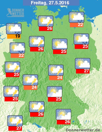 Auch am Wochenende erwartet uns eine sehr schwüle Wärme. Zwar ist es vor allem in der ersten Tageshälfte meist freundlich und sonnig, doch gegen Nachmittag und Abend kommt es im ganzen Land zu gewittrigen Schauern. Diese feucht-warme Wetterlage ist typisch bei der Entstehung von Tornados, sodass auch von Donnerstag bis Sonntag ein solches, eher seltenes, Einzelereignis nicht auszuschließen ist.