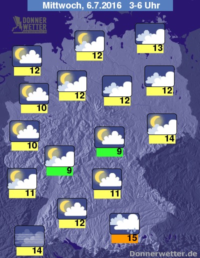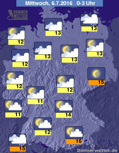 Im weiteren Nachverlauf geht in regional mit den Temperaturen kräftig nach unten, der Himmel zeigt sich in der Nordhälfte dabei bedeckt oder aufgelockert bewölkt, im Süden bleibt es bei meist nur lockerer Bewölkung. Einzelne Schauer sind meist nur an der Ostseeküste sowie im Schwarzwald zu erwarten.