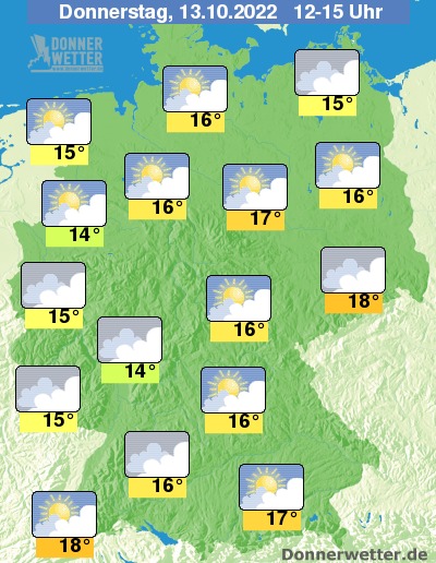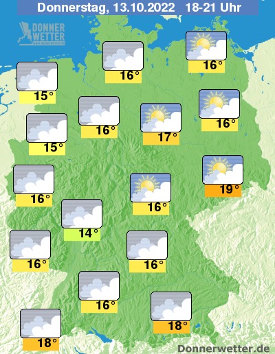 Heute Abend ist es im Osten und Nordosten noch oft aufgelockert bewölkt, ansonsten ziehen verbreitet dichte Wolken durch und im Verlauf setzt im Süden und Westen erster Regen ein. Im übrigen Land bleibt es weitgehend trocken bei 15 Grad in Emden und 19 Grad in Dresden.
