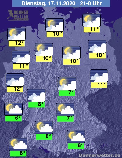 Der Südwestwind bleibt über Nacht im Norden weiterhin spürbar, nach Süden hin schläft er ein.