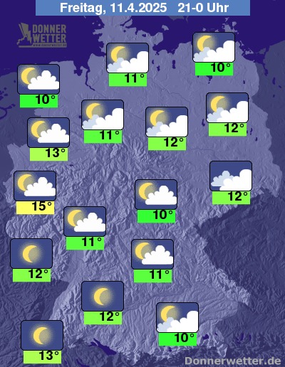 In der Nacht zum Samstag ist es über dem Osten und Nordosten weiterhin wechselnd oder stark bewölkt, es bleibt aber niederschlagsfrei. In den übrigen Landesteilen zeigt sich der Himmel nur gering bewölkt oder es ist sternenklar.